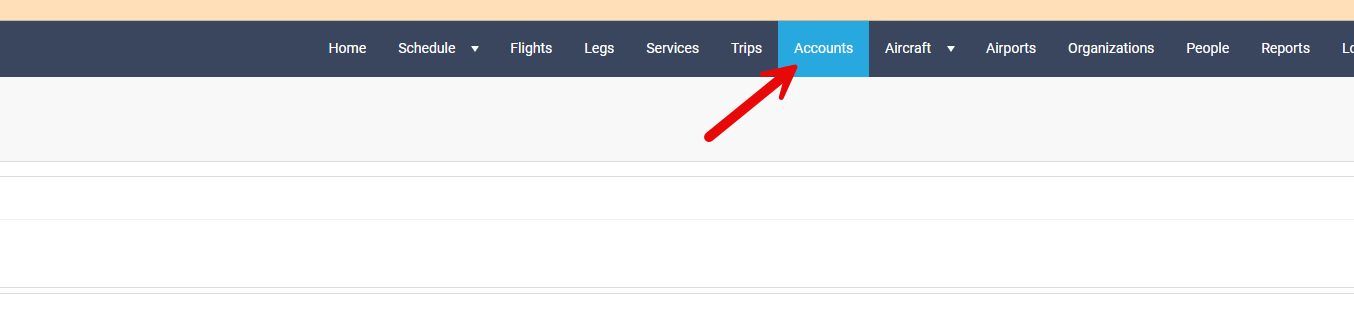Navigate to the Accounts page by clicking on the Accounts module along the top navigation bar.