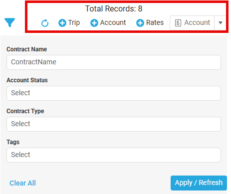 Total Records: This number represents to total numerical count of Accounts that pertain to the filters entered.