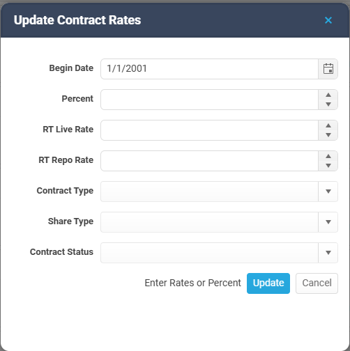 **Remember that if only the "Percent, RT Live Rate, RT Repo Rate" are used, the updates will apply to ALL contracts.