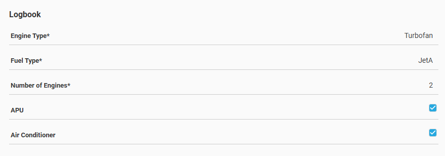 Number of Engines*: Free # field to enter the airframes' appropriate engine count.