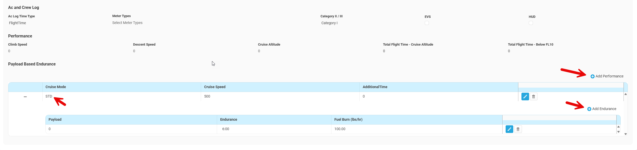 Performance and Payload Based Endurance: These performance #'s allow Horizon to give more accurate ETE, ETA, etc. Users can also add payload based endurance in this area.