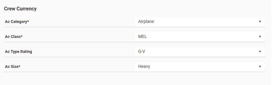 Ac Type Rating: Designate the FAA type rating associate with the airframe. *This is an important step toward crew training and qualifications.