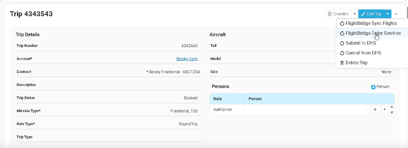 Use FlightBridge Order Services from within a trip to save time and avoid duplicate entries.