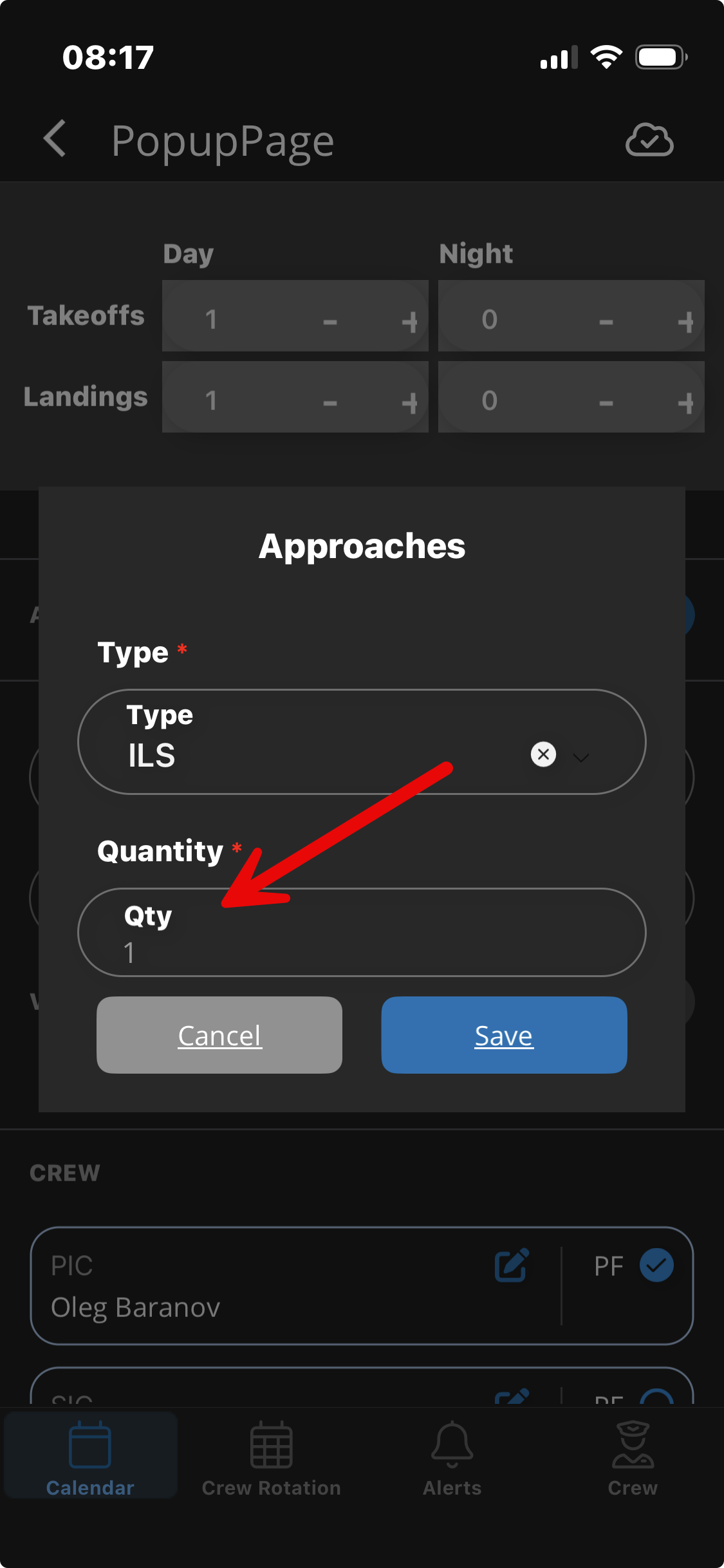 When an approach is added to a flight, the quantity will default to 1 to avoid extra clicks/data entry.
