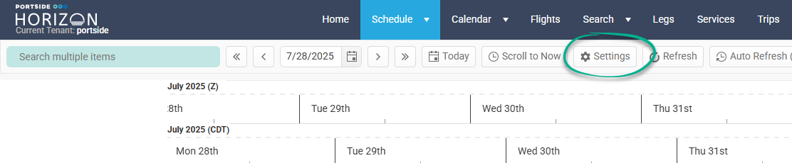 The Schedule Filter Settings panel allows users to filter what appears on the main schedule page for trips, crewmembers, and aircraft. Use this tool to customize your operational view for better focus and clarity.