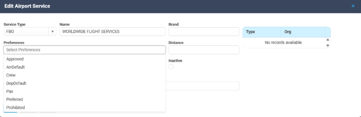 Preferred service designations help ensure that dispatchers, schedulers, and crew members select the correct FBOs, fuelers, or ground service vendors during trip planning.