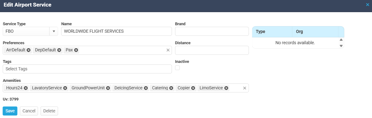Service Type – Select FBO (or other relevant type like Fueler, Catering, etc.).