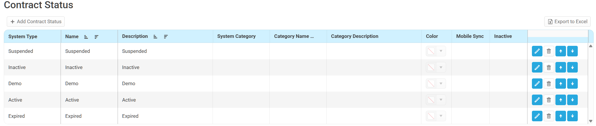 | System Category / Category Name | Groups contract types under broader operational categories. |
