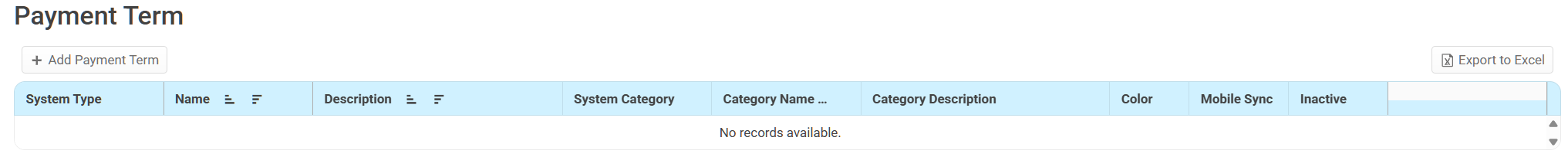 If no payment terms are listed, use + Add Payment Term to create a new entry.