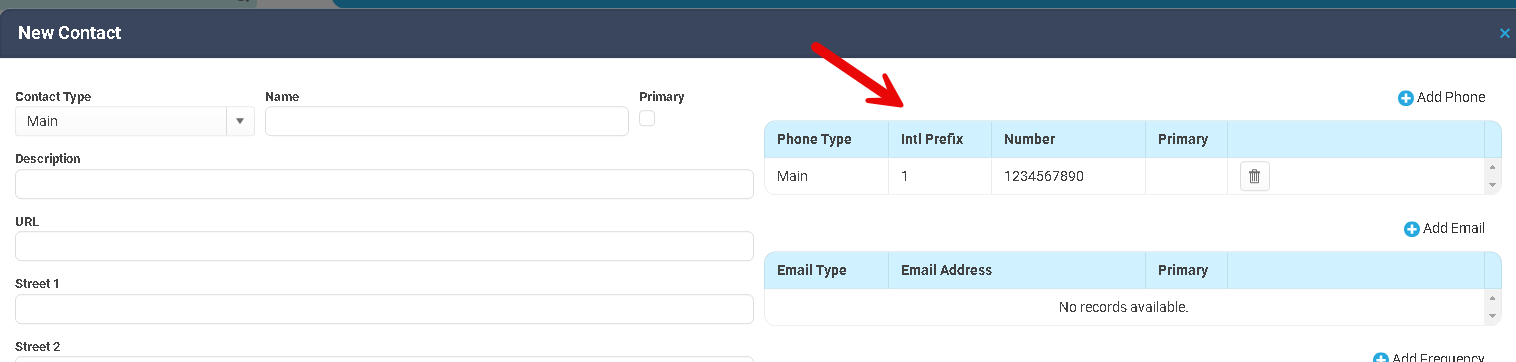 The column header for the Prefix column in the phone number section of Contacts has been updated to say Intl Prefix to provide more clarity.