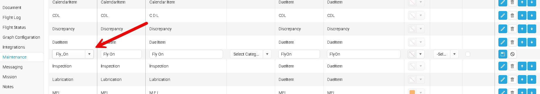 A new maintenance System Type has been added called Fly On. Once setup, this can be used when creating new maintenance items.