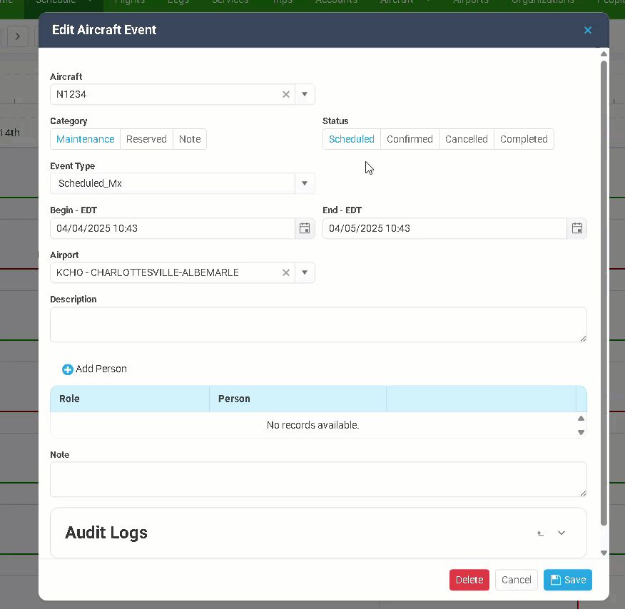 Aircraft Event and Flight/Leg Cancel and Delete Improvements
