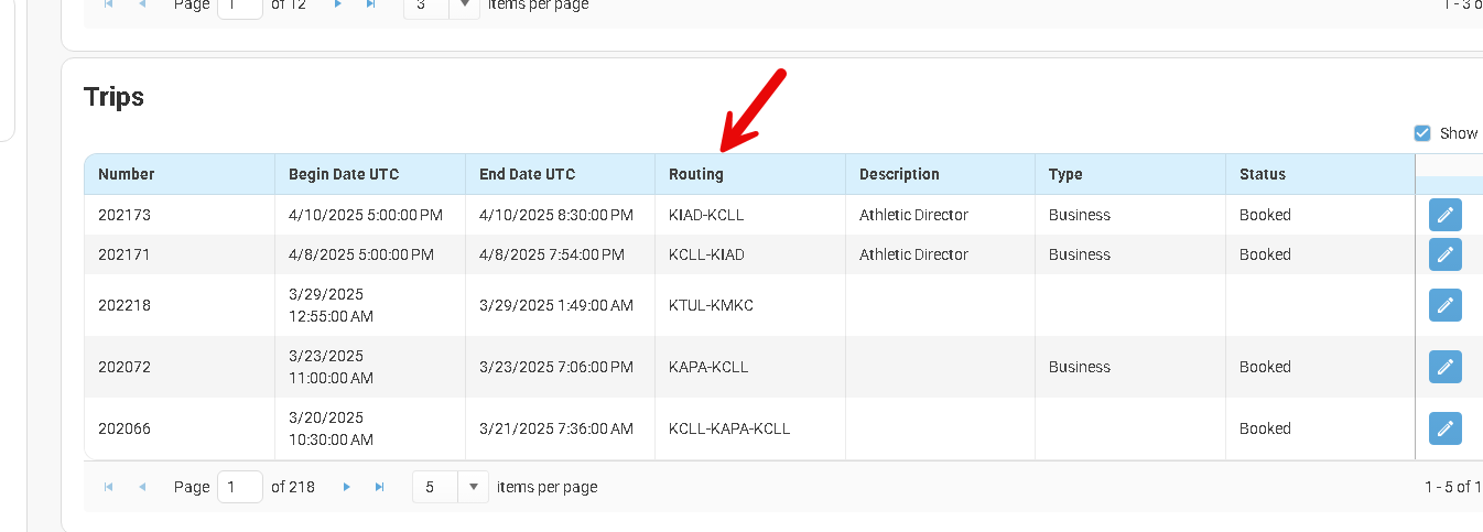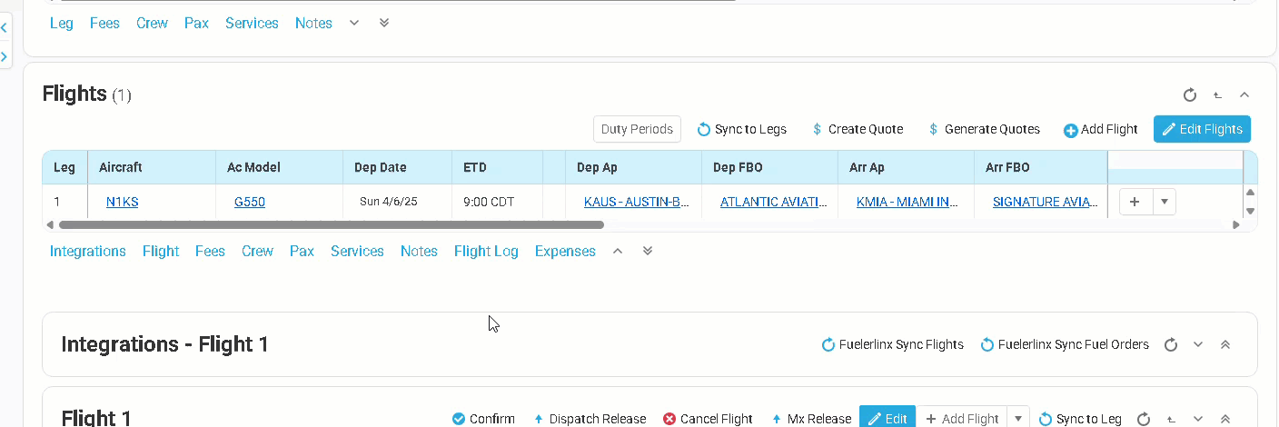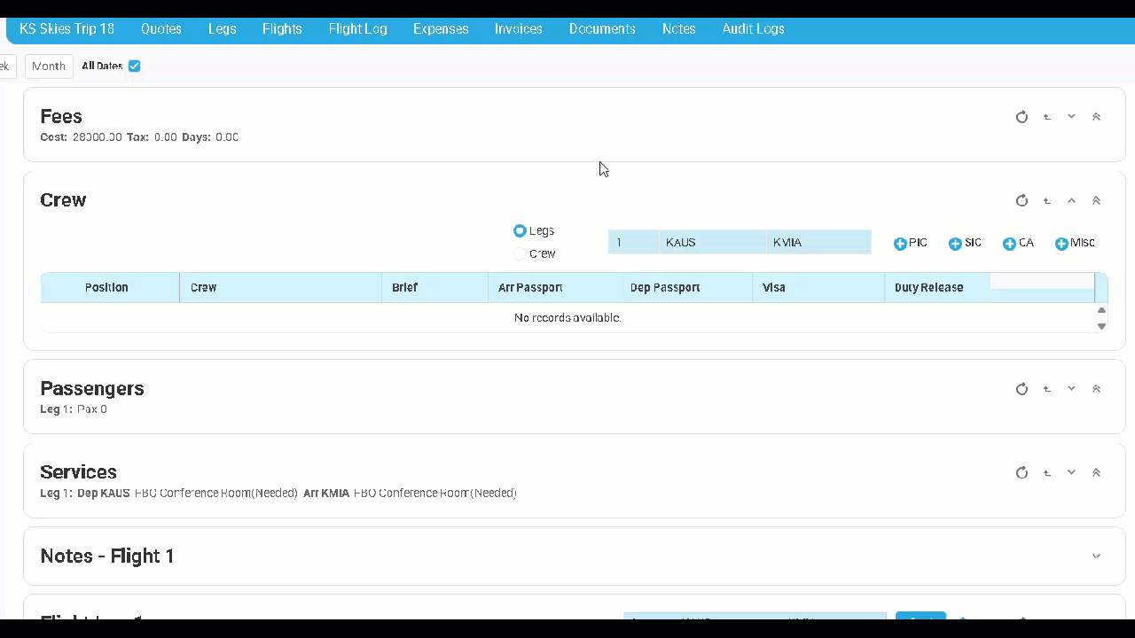 Flight log submissions and updates from the crew mobile app now create an audit log record in the trip.