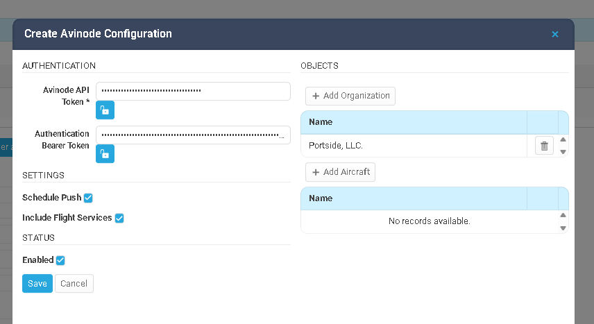 The first (and most important) phase of the Avinode integration is complete. One or multiple Avinode integration configurations can be added, and flight and aircraft events will automatically sync to Avinode. The integration syncs automatically every 5 minutes for the relevant aircraft, but users have the ability to manually force it to sync from the quick actions buttons on the integration setup.