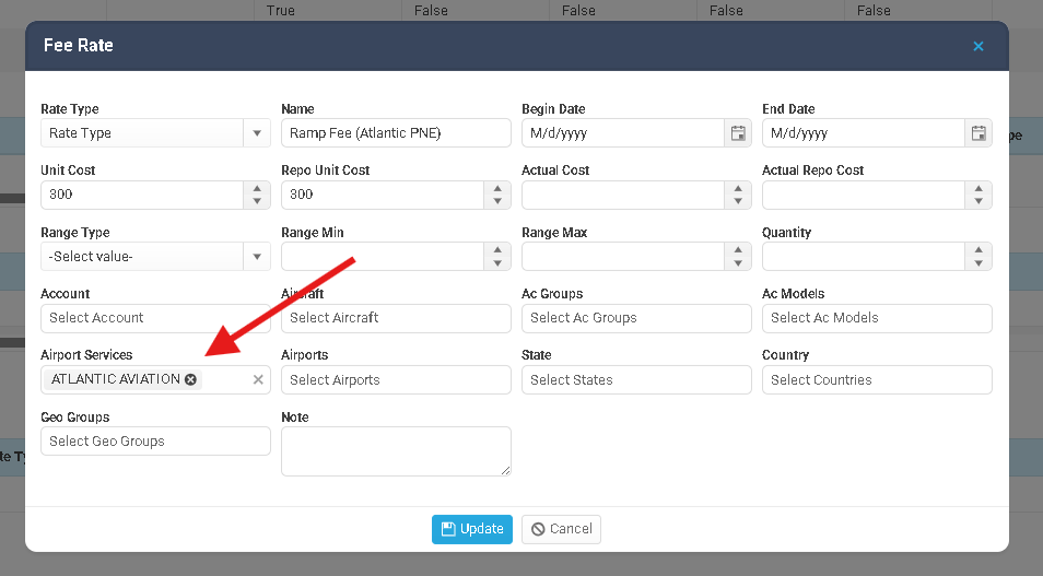 You can now trigger specific fees based on the FBO selected. For example, if landing fees differ between Signature and Atlantic at the same airport, the system will now apply the correct fee automatically based on the service used.